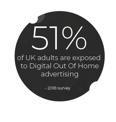 DOOH (Digital Out Of Home) advertising is on the rise. As of 2018, 51% of UK adults are exposed to DOOH advertising. With this method of advertising rising exponentially, traditional methods are on the way out.